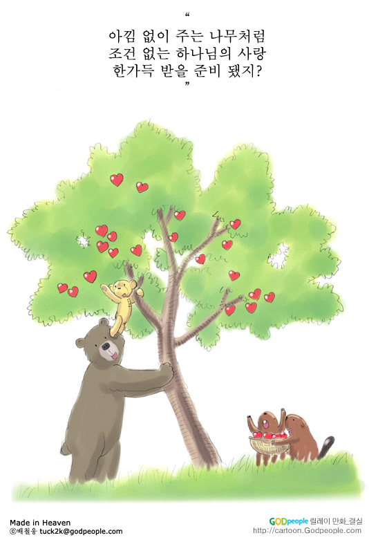 배철웅의 Cartoon Acts 전체보기>> 배철웅 작가 작품활동 응원하기!지난 20년간 갓피플 만화는 주보 사용을 무료로 제공해왔습니다. 이제는 작가들에게 작은 정성을 표현하면 어떨까요? 주보 1회 사용시 1,000원의 자발적 결제 후 이용해주세요주보사용 자발적 결제1,000원작가에게 커피 한잔선물하기좋아요아멘개척교회 돕기 2006-10-17 · 6429 · 106 · 2나무Cartoon Acts_배철웅더보기[카툰액츠]#41[카툰액츠#36]화이팅[효나 하임#50]초대