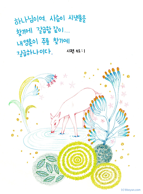 '하나님이여 사슴이 시냇물을 찾기에 갈급함 같이 내 영혼이 주를 찾기에 갈급하니이다 '