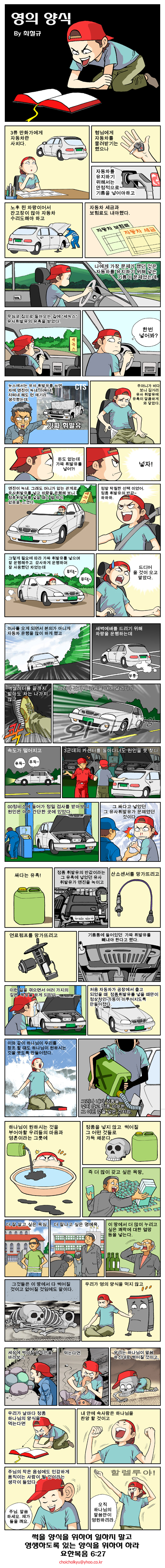 최철규 작가 작품활동 응원하기!지난 20년간 갓피플 만화는 주보 사용을 무료로 제공해왔습니다. 이제는 작가들에게 작은 정성을 표현하면 어떨까요? 주보 1회 사용시 1,000원의 자발적 결제 후 이용해주세요주보사용 자발적 결제1,000원작가에게 커피 한잔선물하기좋아요아멘개척교회 돕기 2009-05-23 · 6058 · 106 · 영최집사의 묵상만화_최철규더보기고난 속에나와 당신이 무슨 상관입니까?내 안에 예수님이 있다면