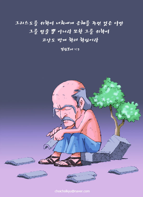 현재에 고난이 너무 힘겨워 불평과 원망, 좌절 후회하고 계십니까? 빌립보서의 말씀처럼 하나님은 우리에게 은혜와 고난을 같은 목적으로 주시는 것을 알게 됩니다. 은혜를 주시는 분도 하나님이시고 고난을 주시는 이도 하나님이시기에 우리가 받는 은혜와 고난은 하나님이 주시는 축복임을 알아야 합니다. 현재에 고난이 너무 힘들어도 하나님의 계획하심을 믿으며 나아가는 한주 되시기를 소망합니다.