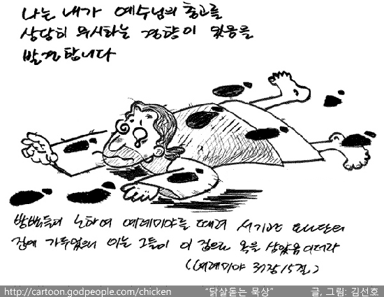 김선호 작가 작품활동 응원하기!지난 20년간 갓피플 만화는 주보 사용을 무료로 제공해왔습니다. 이제는 작가들에게 작은 정성을 표현하면 어떨까요? 주보 1회 사용시 1,000원의 자발적 결제 후 이용해주세요주보사용 자발적 결제1,000원작가에게 커피 한잔선물하기좋아요아멘개척교회 돕기 2012-04-04 · 5479 · 106 · 충고닭살돋는묵상_김선호더보기포도주로 바꿔 주십시오.어떤 부끄러움도 개의치 않는 종이면 좋겠습니다.불러주기만 해도 감사한 걸...