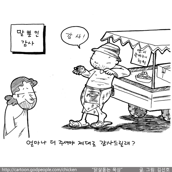 김선호 작가 작품활동 응원하기!지난 20년간 갓피플 만화는 주보 사용을 무료로 제공해왔습니다. 이제는 작가들에게 작은 정성을 표현하면 어떨까요? 주보 1회 사용시 1,000원의 자발적 결제 후 이용해주세요주보사용 자발적 결제1,000원작가에게 커피 한잔선물하기좋아요아멘개척교회 돕기 2014-02-13 · 7249 · 106 · 감사닭살돋는묵상_김선호더보기포도주로 바꿔 주십시오.어떤 부끄러움도 개의치 않는 종이면 좋겠습니다.불러주기만 해도 감사한 걸...