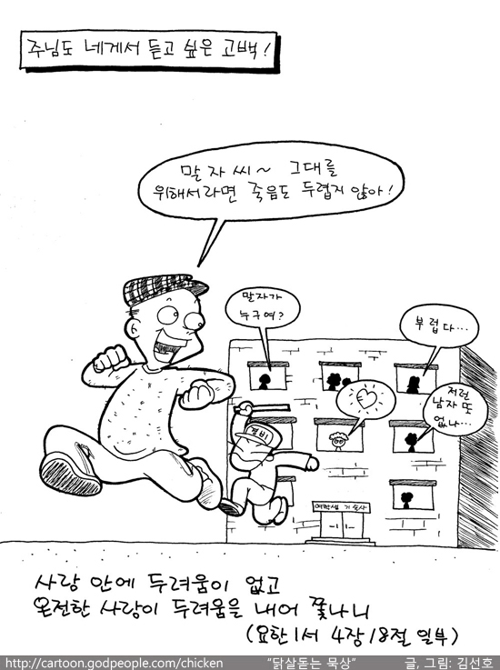 김선호 작가 작품활동 응원하기!지난 20년간 갓피플 만화는 주보 사용을 무료로 제공해왔습니다. 이제는 작가들에게 작은 정성을 표현하면 어떨까요? 주보 1회 사용시 1,000원의 자발적 결제 후 이용해주세요주보사용 자발적 결제1,000원작가에게 커피 한잔선물하기좋아요아멘개척교회 돕기 2014-02-13 · 6055 · 106 · 사랑닭살돋는묵상_김선호더보기포도주로 바꿔 주십시오.어떤 부끄러움도 개의치 않는 종이면 좋겠습니다.불러주기만 해도 감사한 걸...