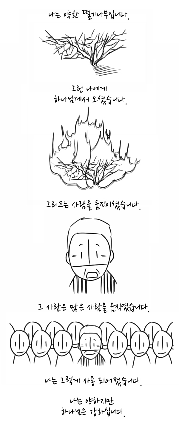 나는 광야의 약한 떨기나무입니다. 김환중 작가 작품활동 응원하기!지난 20년간 갓피플 만화는 주보 사용을 무료로 제공해왔습니다. 이제는 작가들에게 작은 정성을 표현하면 어떨까요? 주보 1회 사용시 1,000원의 자발적 결제 후 이용해주세요주보사용 자발적 결제1,000원작가에게 커피 한잔선물하기좋아요아멘개척교회 돕기 2015-05-10 · 9577 · 106 · 3떨기나무하나님과 동행일기_김환중더보기2024.10.16 하나님과 동행일기2024.10.15 하나님과 동행일기2024.10.08 하나님과 동행일기