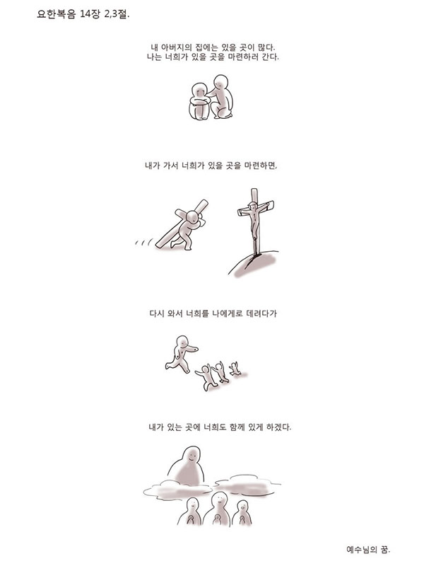 예수님의 꿈. 우상지 작가 작품활동 응원하기!지난 20년간 갓피플 만화는 주보 사용을 무료로 제공해왔습니다. 이제는 작가들에게 작은 정성을 표현하면 어떨까요? 주보 1회 사용시 1,000원의 자발적 결제 후 이용해주세요주보사용 자발적 결제1,000원작가에게 커피 한잔선물하기좋아요아멘개척교회 돕기 2017-02-27 · 7027 · 106 · 1내가 그 안에_우상지더보기발맞춤너의 의미주님 안에