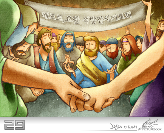 모든 이들은 사도가 풀려난 것에 감사하며 하나님께 기도를 했습니다.