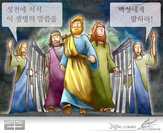 감옥에서 나오자마자 다시 성전에 들어가 더욱 당당히 '생명의 말씀'을 전할 수 있었던 것입니다.