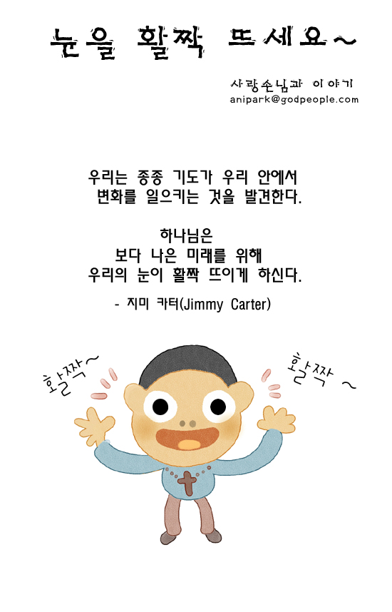 박정인 작가 작품활동 응원하기!지난 20년간 갓피플 만화는 주보 사용을 무료로 제공해왔습니다. 이제는 작가들에게 작은 정성을 표현하면 어떨까요? 주보 1회 사용시 1,000원의 자발적 결제 후 이용해주세요주보사용 자발적 결제1,000원작가에게 커피 한잔선물하기좋아요아멘개척교회 돕기 2007-01-06 · 3173 · 22 · 사랑손님과 이야기_박정인더보기눈을 활짝뜨세요~이 세상의 운명은....간구 하는것....