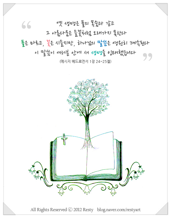 풀은 마르고 꽃은 떨어지되 오직 주의 말씀은 세세토록 있도다