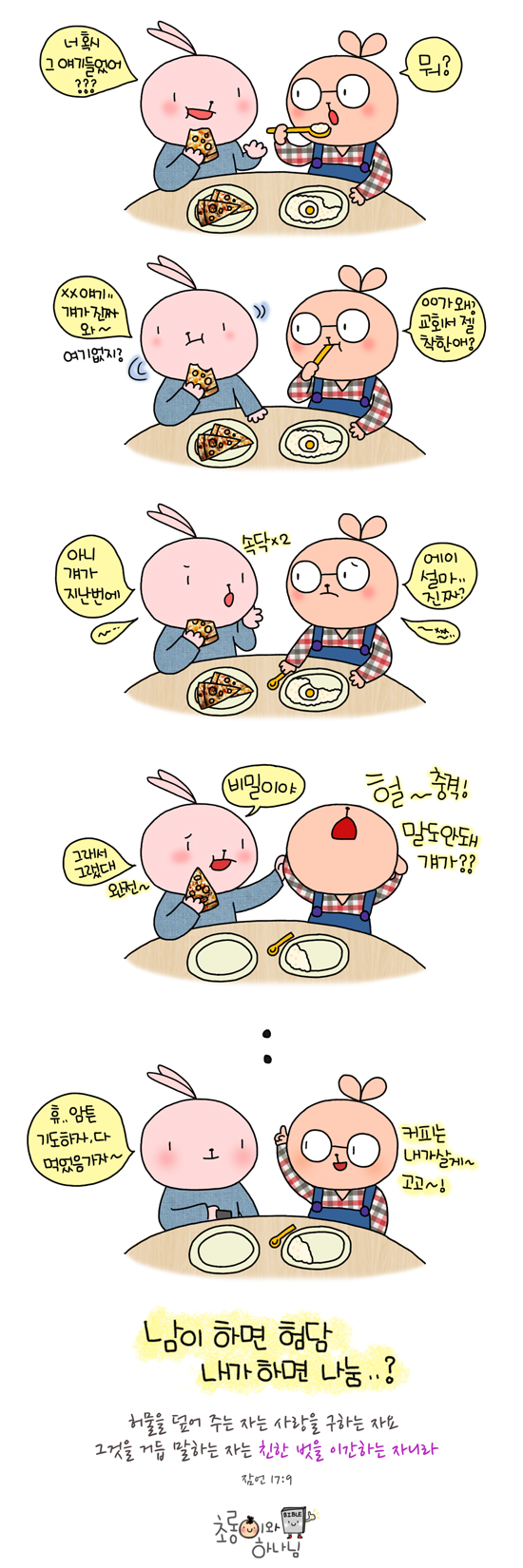 초롱이와하나님 작가가 만드는 기독교 굿즈! 네이버 스마트스토어에서 만나보세요? 초롱이네 문방구 https://smartstore.naver.com/chorongandjesus 김초롱 작가 작품활동 응원하기!지난 20년간 갓피플 만화는 주보 사용을 무료로 제공해왔습니다. 이제는 작가들에게 작은 정성을 표현하면 어떨까요? 주보 1회 사용시 1,000원의 자발적 결제 후 이용해주세요주보사용 자발적 결제1,000원작가에게 커피 한잔선물하기좋아요아멘개척교회 돕기 2013-09-27 · 6497 · 22 · 1험담초롱이와 하나님_김초롱더보기하나님께 말씀드려 :)자유케하셨네!순종