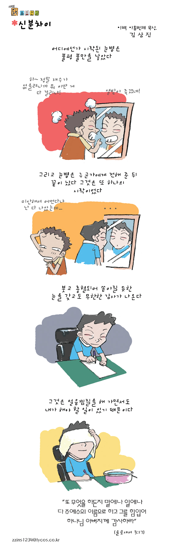 김상진 작가 작품활동 응원하기!지난 20년간 갓피플 만화는 주보 사용을 무료로 제공해왔습니다. 이제는 작가들에게 작은 정성을 표현하면 어떨까요? 주보 1회 사용시 1,000원의 자발적 결제 후 이용해주세요주보사용 자발적 결제1,000원작가에게 커피 한잔선물하기좋아요아멘개척교회 돕기 2006-08-07 · 1454 · 22 · 유익닭 울음소리_김상진더보기성경여행-6편빚과 몫길