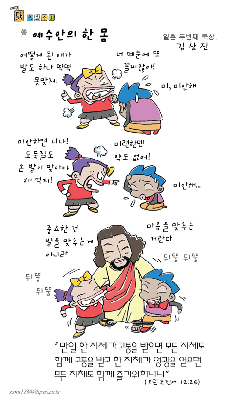 김상진 작가 작품활동 응원하기!지난 20년간 갓피플 만화는 주보 사용을 무료로 제공해왔습니다. 이제는 작가들에게 작은 정성을 표현하면 어떨까요? 주보 1회 사용시 1,000원의 자발적 결제 후 이용해주세요주보사용 자발적 결제1,000원작가에게 커피 한잔선물하기좋아요아멘개척교회 돕기 2005-04-14 · 9835 · 22 · 1지체닭 울음소리_김상진더보기하늘편-41. 뒤따름의 길신앙야그-37.신앙야그-36.