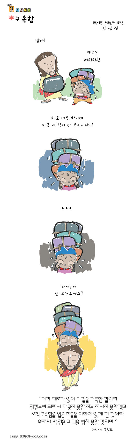 김상진 작가 작품활동 응원하기!지난 20년간 갓피플 만화는 주보 사용을 무료로 제공해왔습니다. 이제는 작가들에게 작은 정성을 표현하면 어떨까요? 주보 1회 사용시 1,000원의 자발적 결제 후 이용해주세요주보사용 자발적 결제1,000원작가에게 커피 한잔선물하기좋아요아멘개척교회 돕기 2006-04-07 · 9823 · 23 · 1구속닭 울음소리_김상진더보기성경여행-6편빚과 몫길