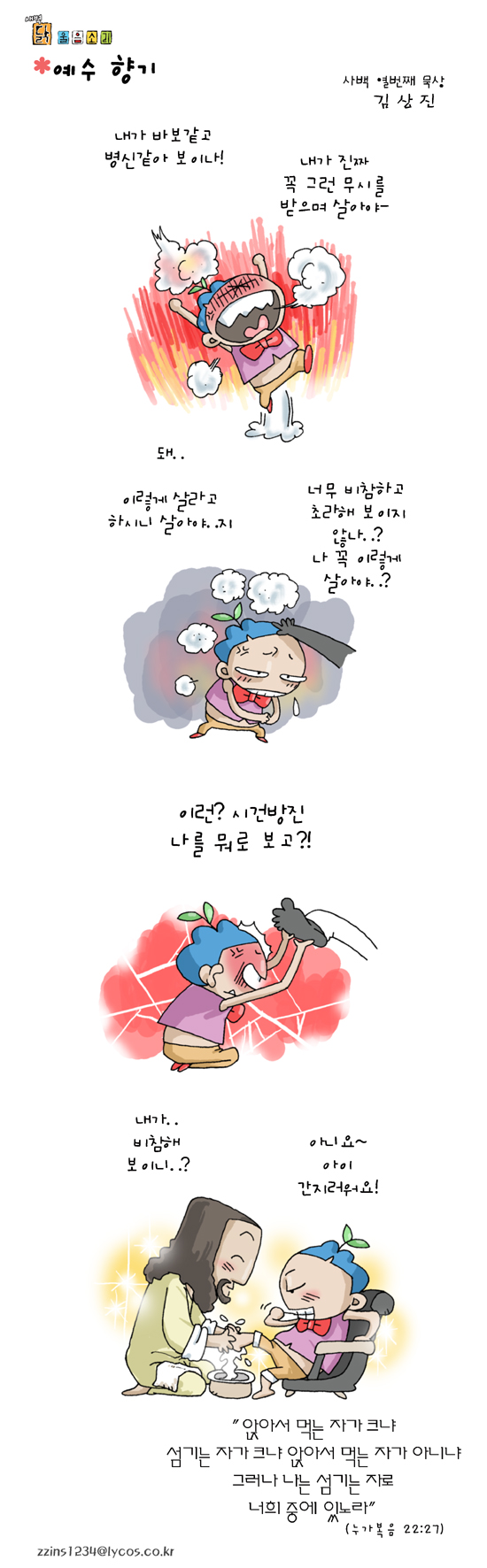 김상진 작가 작품활동 응원하기!지난 20년간 갓피플 만화는 주보 사용을 무료로 제공해왔습니다. 이제는 작가들에게 작은 정성을 표현하면 어떨까요? 주보 1회 사용시 1,000원의 자발적 결제 후 이용해주세요주보사용 자발적 결제1,000원작가에게 커피 한잔선물하기좋아요아멘개척교회 돕기 2008-11-06 · 1586 · 22 · 향기닭 울음소리_김상진더보기성경여행-6편빚과 몫길