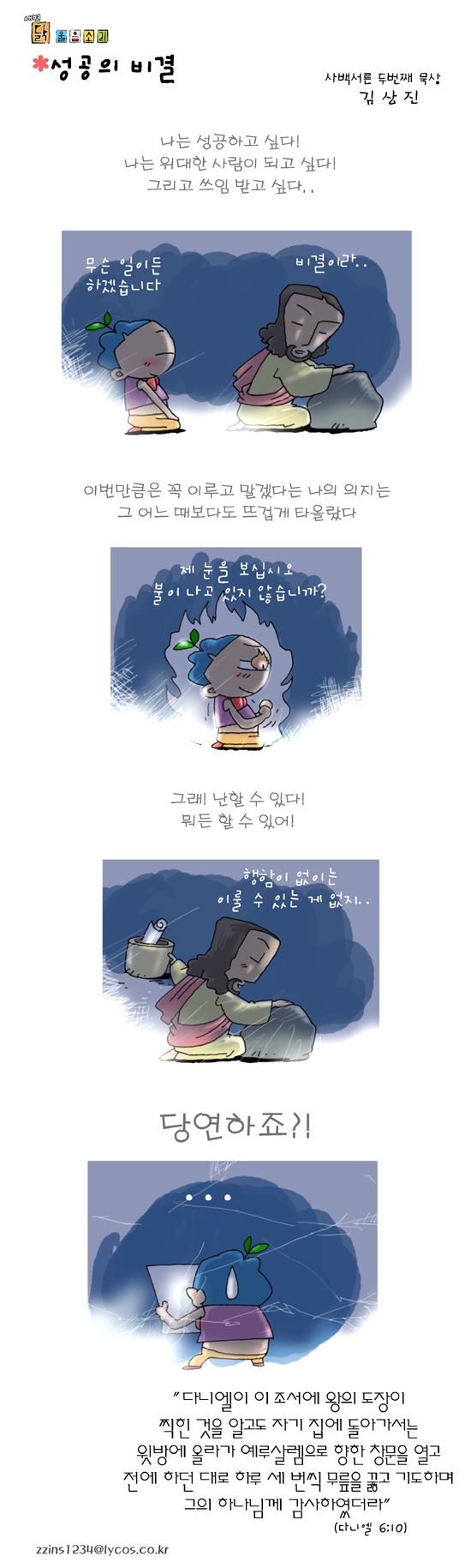 김상진 작가 작품활동 응원하기!지난 20년간 갓피플 만화는 주보 사용을 무료로 제공해왔습니다. 이제는 작가들에게 작은 정성을 표현하면 어떨까요? 주보 1회 사용시 1,000원의 자발적 결제 후 이용해주세요주보사용 자발적 결제1,000원작가에게 커피 한잔선물하기좋아요아멘개척교회 돕기 2009-01-15 · 6771 · 22 · 쓰임닭 울음소리_김상진더보기성경여행-6편빚과 몫길