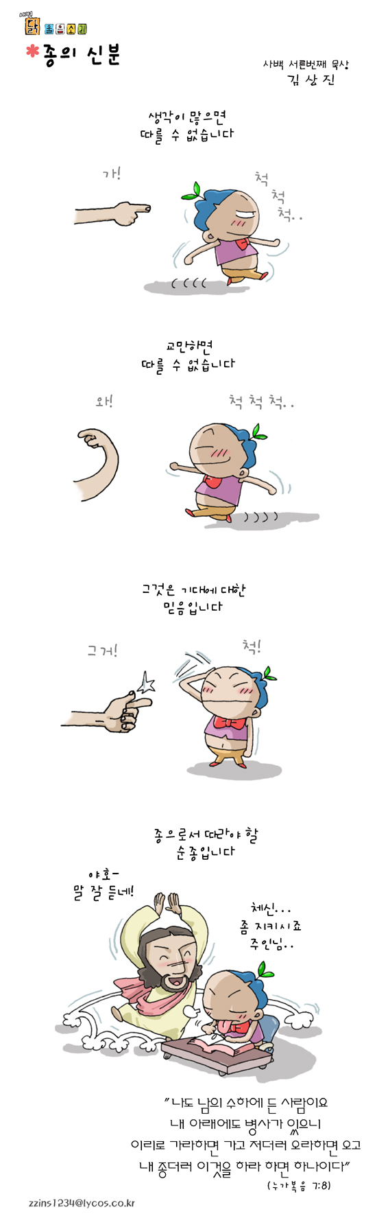 김상진 작가 작품활동 응원하기!지난 20년간 갓피플 만화는 주보 사용을 무료로 제공해왔습니다. 이제는 작가들에게 작은 정성을 표현하면 어떨까요? 주보 1회 사용시 1,000원의 자발적 결제 후 이용해주세요주보사용 자발적 결제1,000원작가에게 커피 한잔선물하기좋아요아멘개척교회 돕기 2009-01-09 · 8670 · 22 · 종닭 울음소리_김상진더보기성경여행-6편빚과 몫길