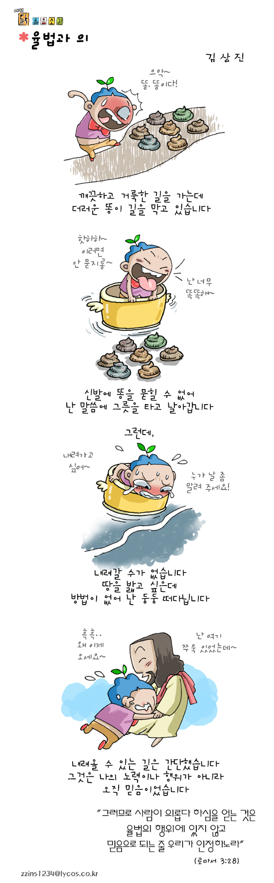 김상진 작가 작품활동 응원하기!지난 20년간 갓피플 만화는 주보 사용을 무료로 제공해왔습니다. 이제는 작가들에게 작은 정성을 표현하면 어떨까요? 주보 1회 사용시 1,000원의 자발적 결제 후 이용해주세요주보사용 자발적 결제1,000원작가에게 커피 한잔선물하기좋아요아멘개척교회 돕기 2009-09-16 · 6742 · 22 · 의닭 울음소리_김상진더보기성경여행-6편빚과 몫길