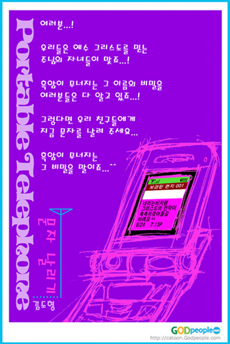 김도형 작가 작품활동 응원하기!지난 20년간 갓피플 만화는 주보 사용을 무료로 제공해왔습니다. 이제는 작가들에게 작은 정성을 표현하면 어떨까요? 주보 1회 사용시 1,000원의 자발적 결제 후 이용해주세요주보사용 자발적 결제1,000원작가에게 커피 한잔선물하기좋아요아멘개척교회 돕기 2005-08-27 · 3942 · 22 · 문자I♡J 보그미_김도형더보기흔들리는 나...문제...^^실패와 만남