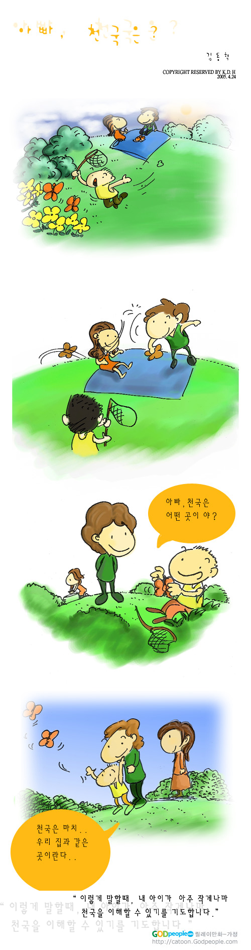 김동혁 작가 작품활동 응원하기!지난 20년간 갓피플 만화는 주보 사용을 무료로 제공해왔습니다. 이제는 작가들에게 작은 정성을 표현하면 어떨까요? 주보 1회 사용시 1,000원의 자발적 결제 후 이용해주세요주보사용 자발적 결제1,000원작가에게 커피 한잔선물하기좋아요아멘개척교회 돕기 2005-04-24 · 4383 · 23 · 가정의달꽃의 고백_김동혁더보기Gospeltime 1부 4화Gospeltime 1부 3화Gospeltime 1부 2화