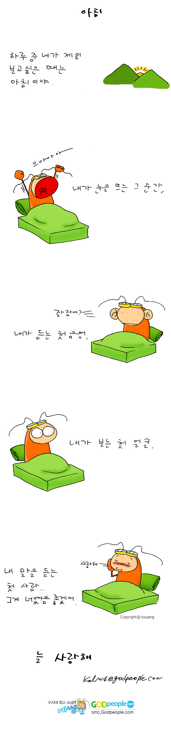 김선호 작가 작품활동 응원하기!지난 20년간 갓피플 만화는 주보 사용을 무료로 제공해왔습니다. 이제는 작가들에게 작은 정성을 표현하면 어떨까요? 주보 1회 사용시 1,000원의 자발적 결제 후 이용해주세요주보사용 자발적 결제1,000원작가에게 커피 한잔선물하기좋아요아멘개척교회 돕기 2005-01-24 · 7080 · 22 · 항상닭살돋는묵상_김선호더보기포도주로 바꿔 주십시오.어떤 부끄러움도 개의치 않는 종이면 좋겠습니다.불러주기만 해도 감사한 걸...