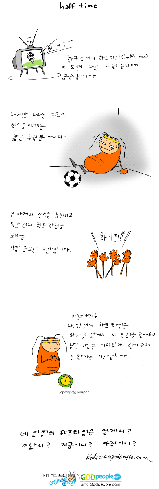 매일의 삶 속에서 나를 돌아보는 시간이 하프타임이다.