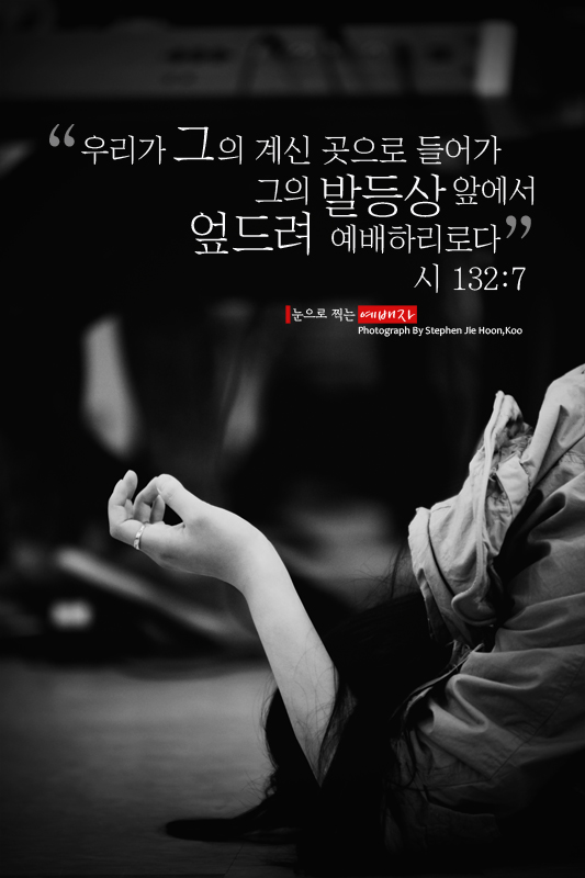 들어가 그의 발등상 앞에서