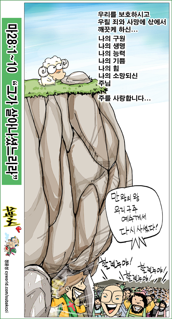 정윤성 작가 작품활동 응원하기!지난 20년간 갓피플 만화는 주보 사용을 무료로 제공해왔습니다. 이제는 작가들에게 작은 정성을 표현하면 어떨까요? 주보 1회 사용시 1,000원의 자발적 결제 후 이용해주세요주보사용 자발적 결제1,000원작가에게 커피 한잔선물하기좋아요아멘개척교회 돕기 2010-04-02 · 1660 · 22 · 부활수박씨_정윤성더보기세상의 빛되신 예수님시험당하신 예수님수박씨