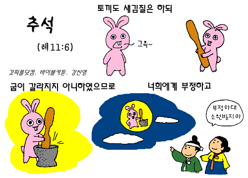 강신영 작가 작품활동 응원하기!지난 20년간 갓피플 만화는 주보 사용을 무료로 제공해왔습니다. 이제는 작가들에게 작은 정성을 표현하면 어떨까요? 주보 1회 사용시 1,000원의 자발적 결제 후 이용해주세요주보사용 자발적 결제1,000원작가에게 커피 한잔선물하기좋아요아멘개척교회 돕기 2008-09-16 · 5465 · 22 · 토끼바이블 카툰_강신영더보기필살기할수있는것말 한마디