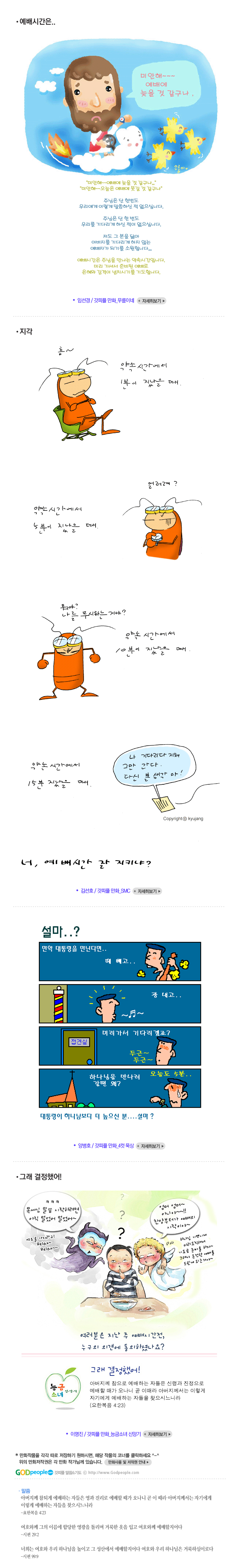 † 지금 교회와 성도에게 필요해요~좋아요아멘개척교회 돕기 2014-02-15 · 30209 · 4 · 1예배만화묵상예배지각안하기온전한예배지각오늘의테마더보기정신없는 세상, 나를 지키는 법!!환난에서 건짐 받는 특별 기도법!!기도가 축복으로 돌아오는 순간!!