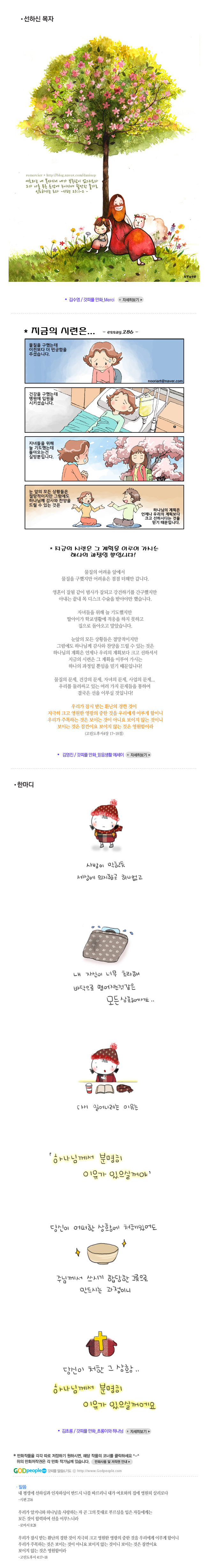 † 지금 교회와 성도에게 필요해요~좋아요아멘개척교회 돕기 2014-03-08 · 38686 · 7 · 만화묵상소망선하신목사선한목자오늘의테마더보기정신없는 세상, 나를 지키는 법!!환난에서 건짐 받는 특별 기도법!!기도가 축복으로 돌아오는 순간!!