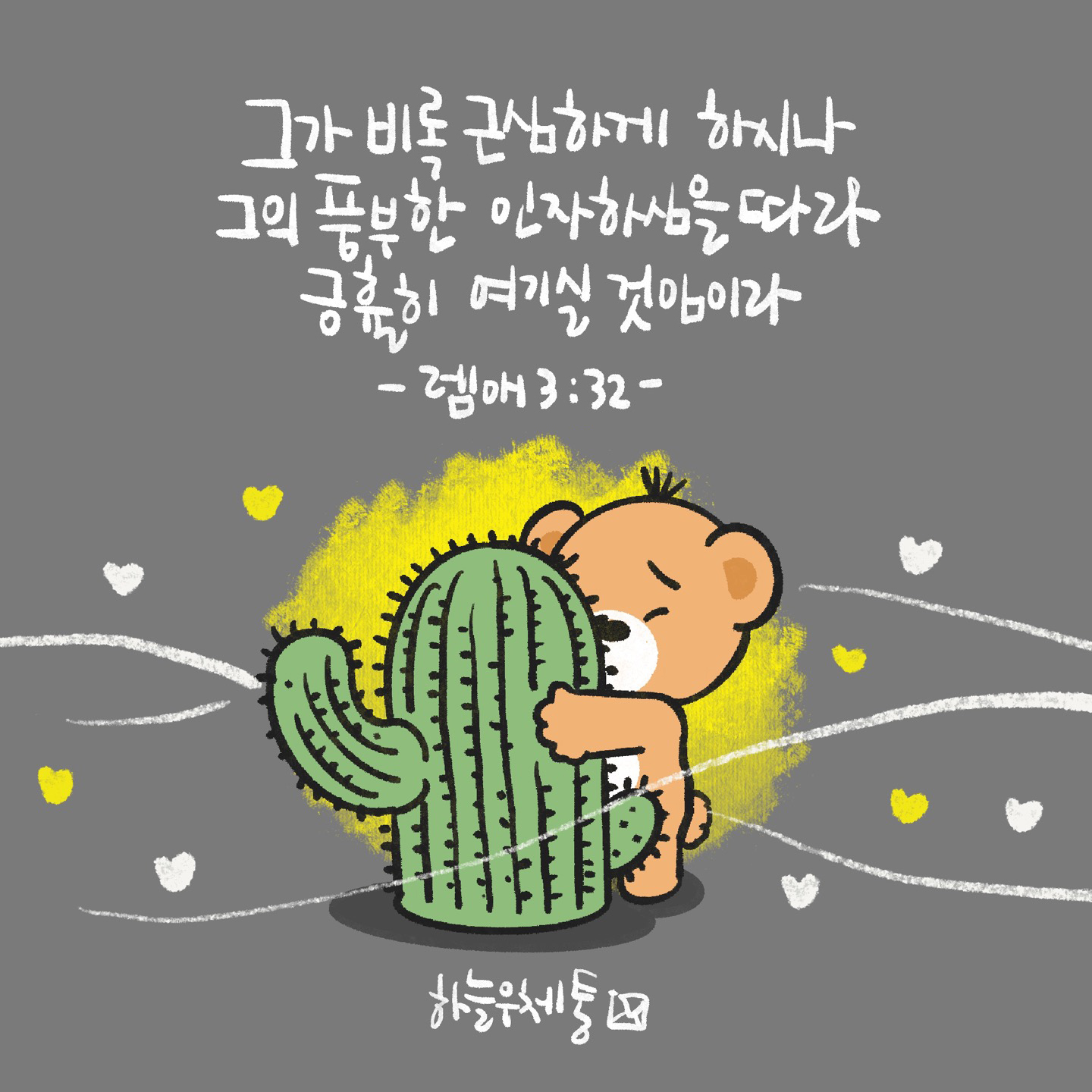 그가 비록 근심하게 하시나 그의 풍부한 인자하심에 따라 긍휼히 여기실 것임이라 주께서 인생으로 고생하게 하시며 근심하게 하심은 본심이 아니시로다 (애3:32-33)