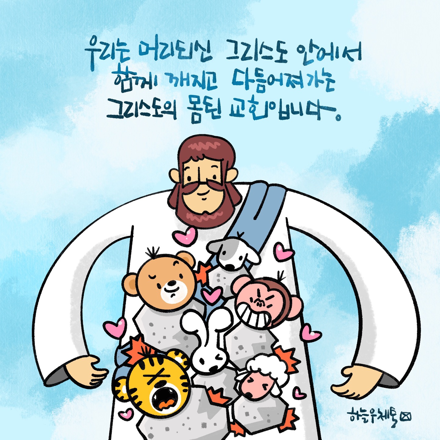 사랑하는 주님, 머리되신 그리스도로 말미암아 한 몸으로 불러주심을 감사드립니다. 세상에 많은 교회의 지체들이 있습니다. 같은 교회 안에서도 서로 다른 역할들을 부여하사 각기 소중한 그리스도의 몸의 한 부분을 감당케 하여 주심을 감사드립니다. 서로가 서로의 필요를 채우고 메꾸며... 그리스도 안에서 사랑으로 하나될 수 있도록 성령께서 쉬지않고 일하고 계심을 믿습니다. 제게 줄로 재어주신 공동체 안에서 피차 뜨겁게 사랑하는 법을 배워 하나되게 하시려고 창세 전에 하나로 묶어주신 교제권을 허락해 주심을 감사드립니다. 기도와 섬김으로 하나되는 법을 날마다 배우게 하시고 교회 안에서의 사랑이 날마다 깊어질 수 있게 하여 주시옵소서. 세상 사람들에게 교회의 하나된 모습 속에서 하나님의 사랑을 밝히 볼 수 있도록... 머리되신 그리스도 안에서 사랑으로 하나되게 하소서. 예수님의 이름으로 기도합니다. 아멘!