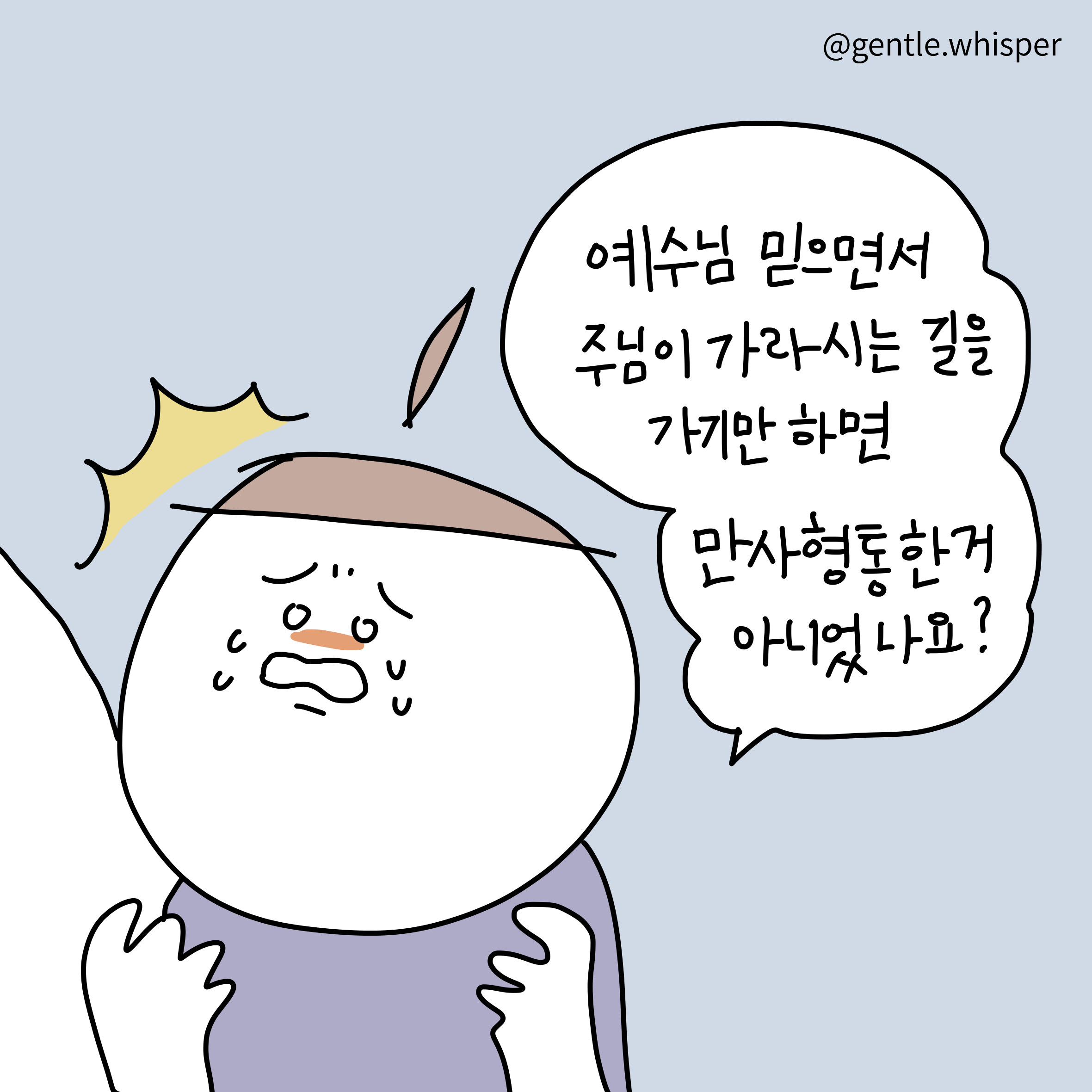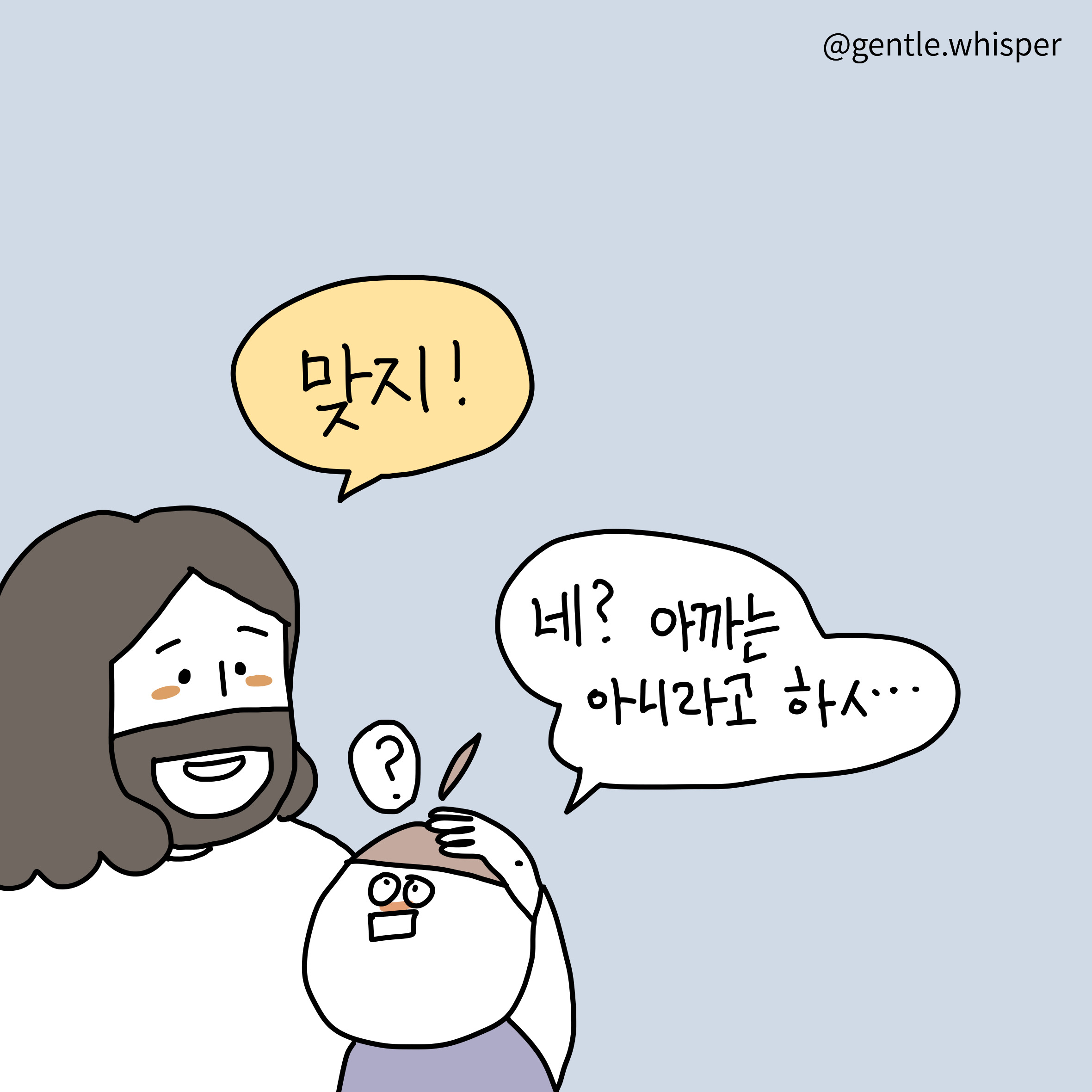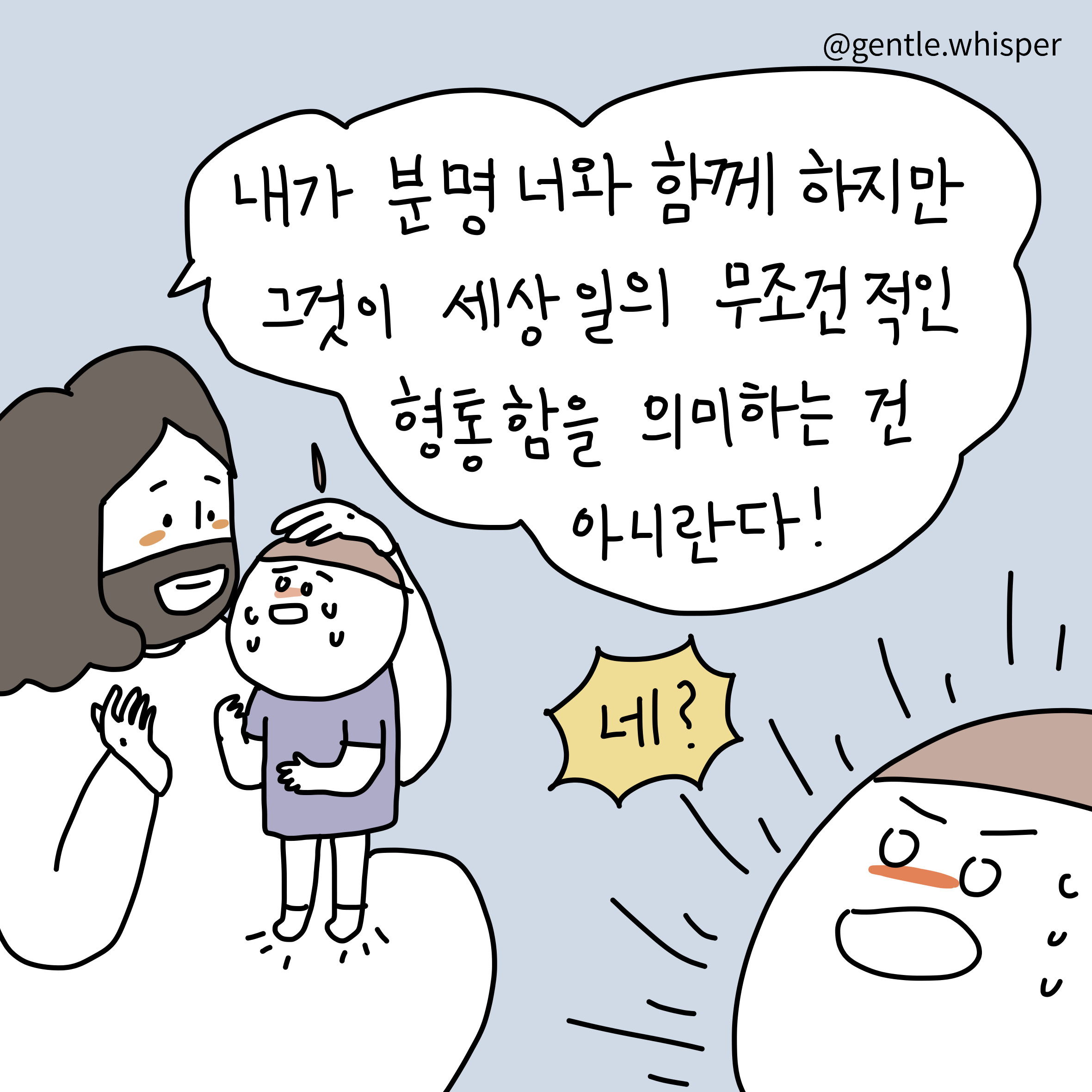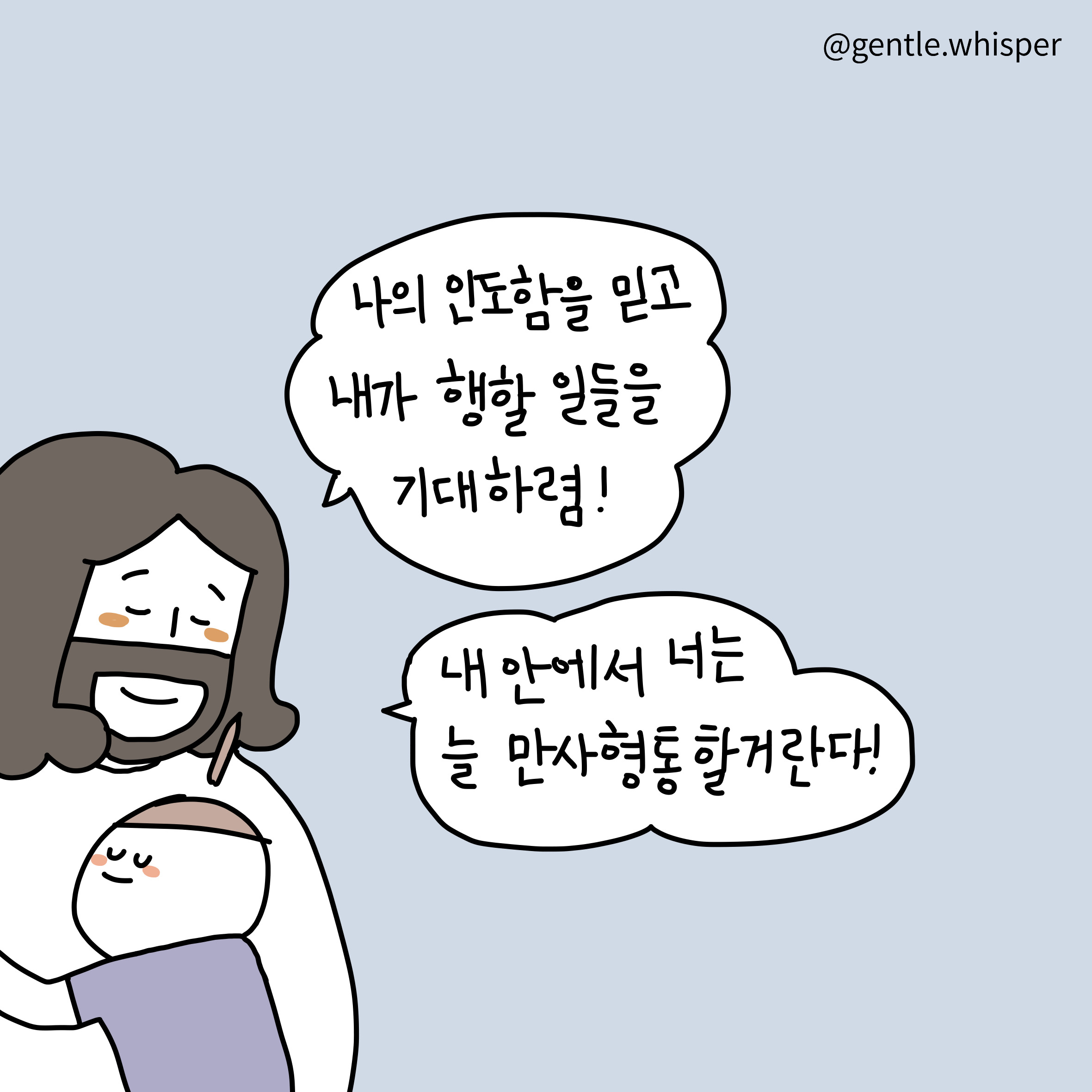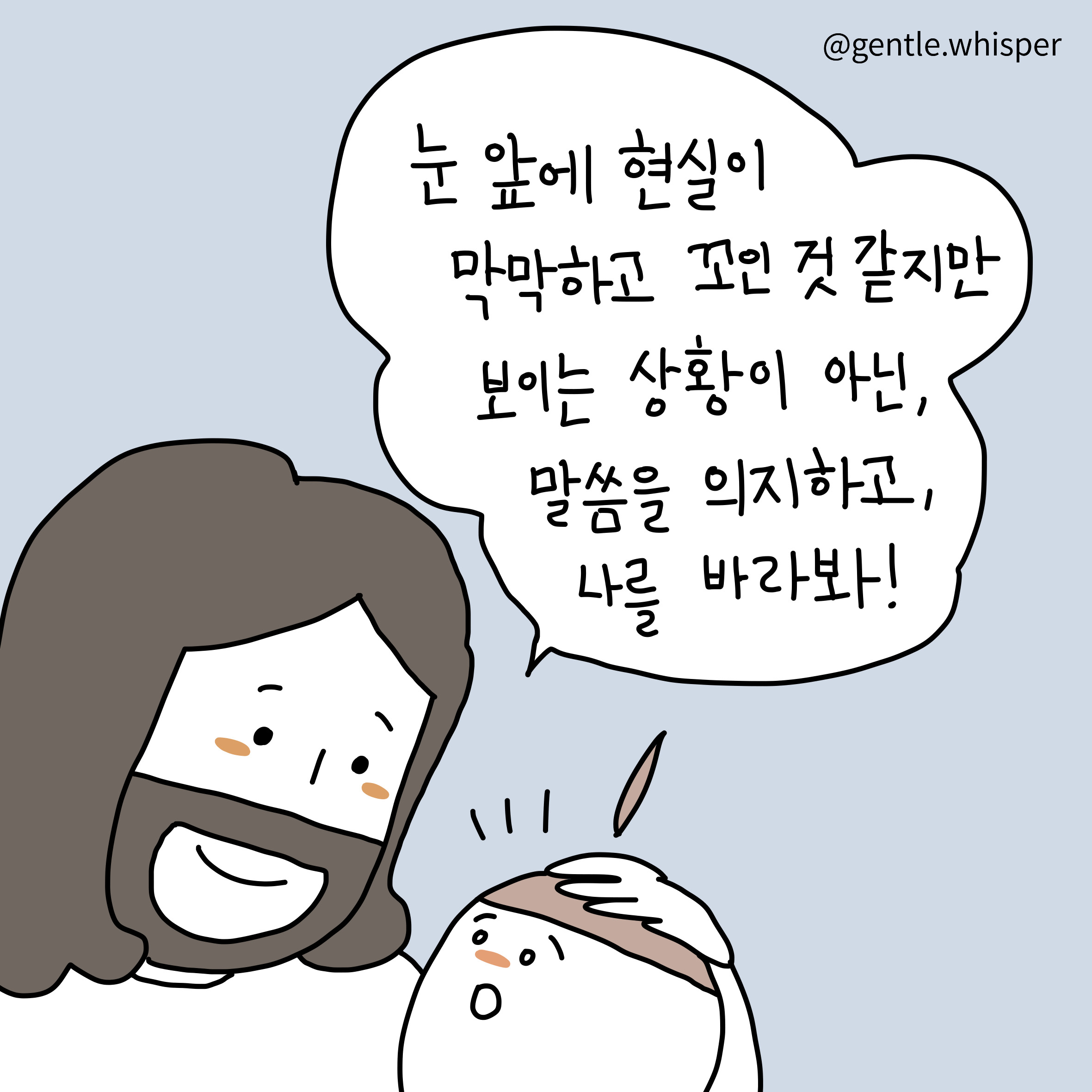 최세미 작가 작품활동 응원하기!지난 20년간 갓피플 만화는 주보 사용을 무료로 제공해왔습니다. 이제는 작가들에게 작은 정성을 표현하면 어떨까요? 주보 1회 사용시 1,000원의 자발적 결제 후 이용해주세요주보사용 자발적 결제1,000원작가에게 커피 한잔선물하기좋아요아멘개척교회 돕기 2023-06-24 · 2376 · 92 · 16나의갈길다간후에 만사형통 임마누엘 하나님이 주인되시는 것 진짜 주인 평안함God's gentle whisper_최세미더보기시편23:1널 위해 기도하고 있어!어떤 순간에도
