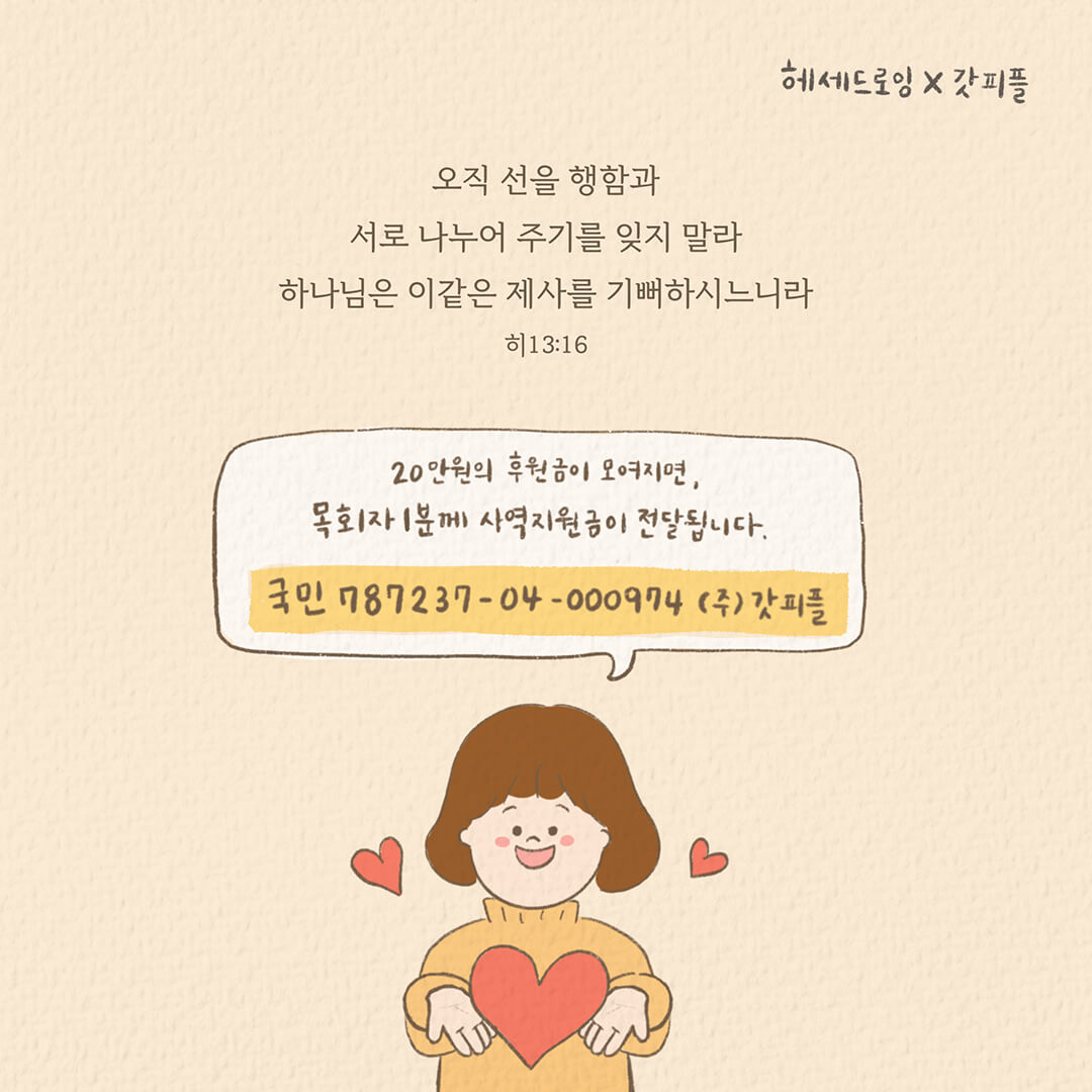 본 작품은 헤세드드로잉 @hessedrawing 김혜연작가님 께서 재능기부로 섬겨주셨습니다. 감사합니다.