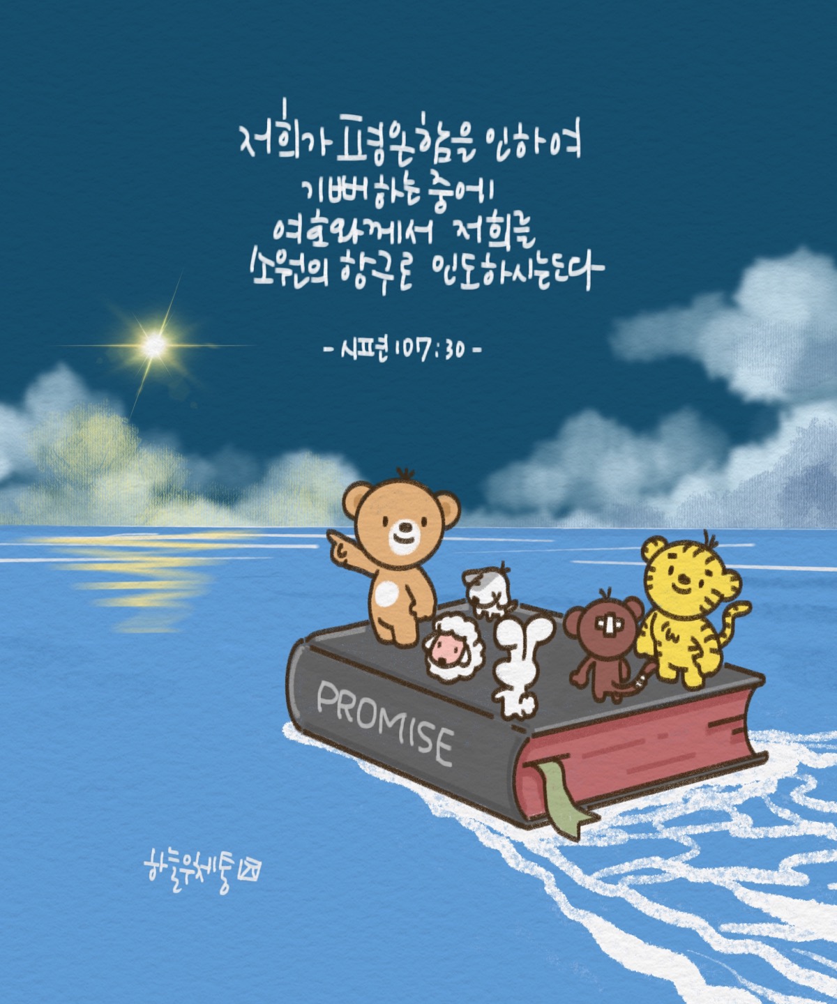 그들이 평온함으로 말미암아 기뻐하는 중에 여호와께서 그들이 바라는 항구로 인도하시는도다 (시107:30)