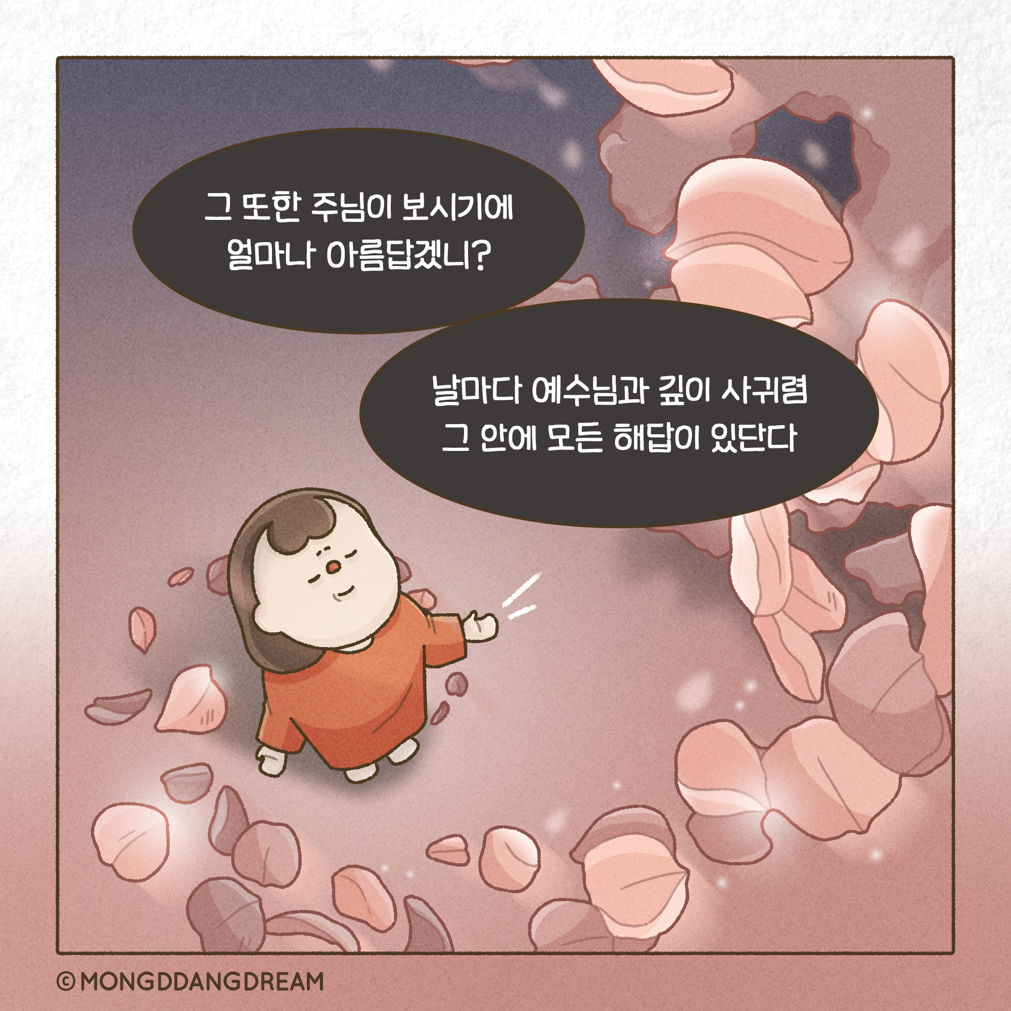 이소라 작가 작품활동 응원하기!지난 20년간 갓피플 만화는 주보 사용을 무료로 제공해왔습니다. 이제는 작가들에게 작은 정성을 표현하면 어떨까요? 주보 1회 사용시 1,000원의 자발적 결제 후 이용해주세요주보사용 자발적 결제1,000원작가에게 커피 한잔선물하기좋아요아멘개척교회 돕기 2023-08-07 · 1494 · 39 · 14바이지저스By Jesus몽땅드림몽이땅이드림이흔들림고민신앙생활하나님예수님성령님경험체험믿음열심알아감앎혼란사귐교제치열함흔적아름다움해답정답마음사랑뿌리그리스도의 사랑너비길이높이깊이충만충만함몽땅 드림_이소라더보기[몽땅툰] 말씀은 골고루 냠냠![몽땅툰] 영원한 피난처[몽땅툰] 감사할 때에