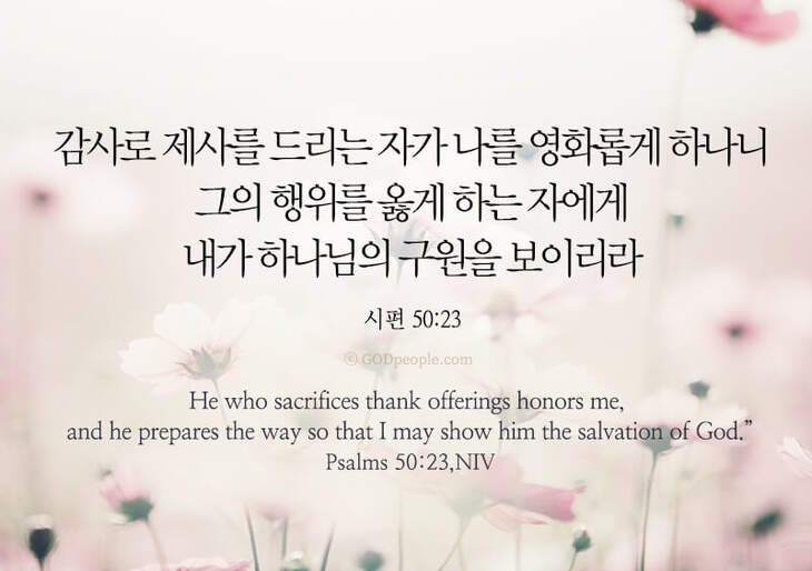 감사로 제사를 드리는 자가 나를 영화롭게 하나니 그의 행위를 옳게 하는 자에게 내가 하나님의 구원을 보이리라 _시편 50:23