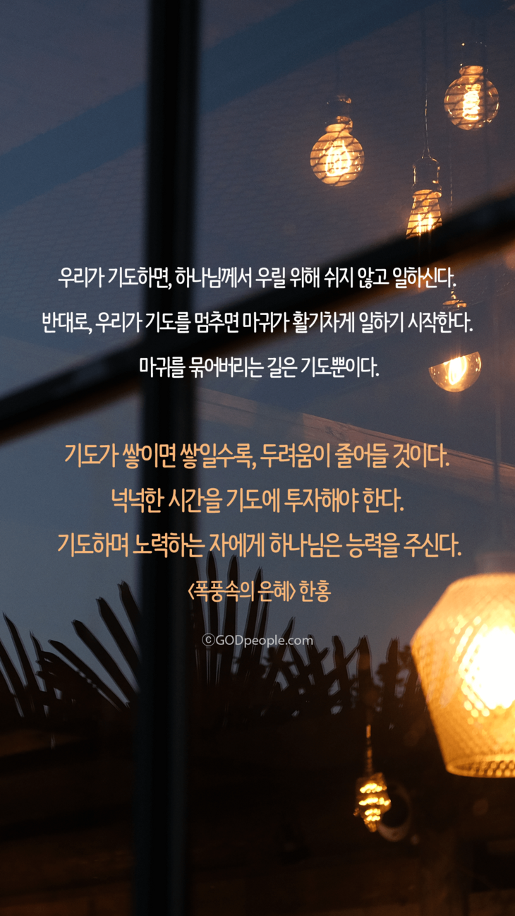 기도하지 않는 사람은 하나님이 돕고 싶으셔도 도우실 수 없다는 E.M.바운즈의 말처럼 유일한 소망이신 주님앞에 나아가 기도하며 노력하며 심는 10월 되시길 축복합니다.
