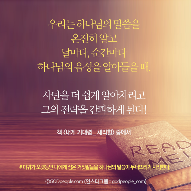 우리는 하나님의 말씀을 온전히 알고 날마다, 순간마다 하나님의 음성을 알아들을 때, 사탄을 더 쉽게 알아차리고 그의 전략을 간파하게 된다.