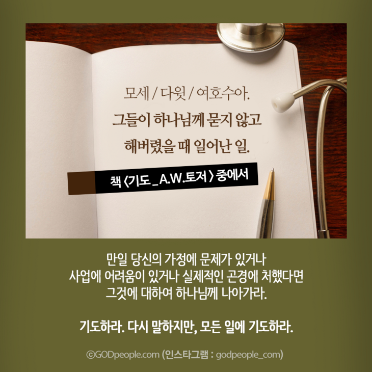 만일 당신의 가정에 문제가 있거나 사업에 어려움이 있거나 실제적인 곤경에 처했다면 그것에 대하여 하나님께 나아가라. 기도하라.