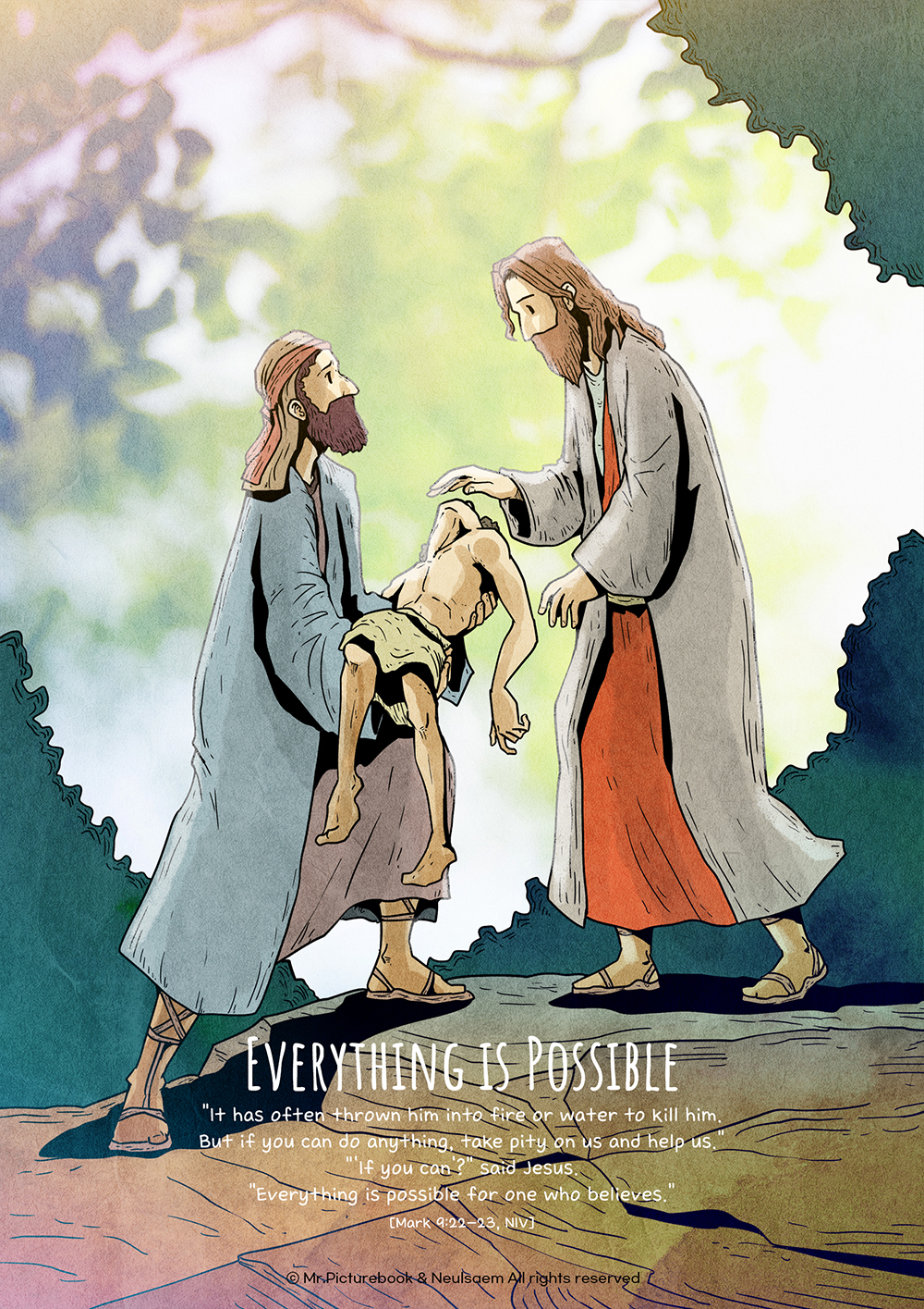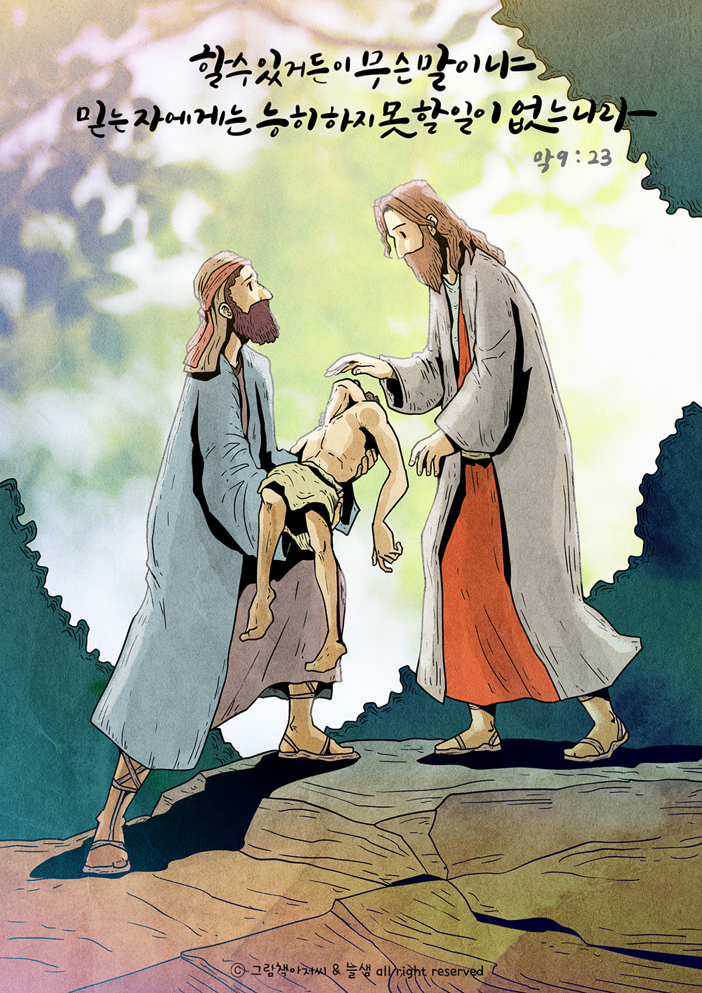 예수께서 이르시되 할 수 있거든이 무슨 말이냐 믿는 자에게는 능히 하지 못할 일이 없느니라 하시니