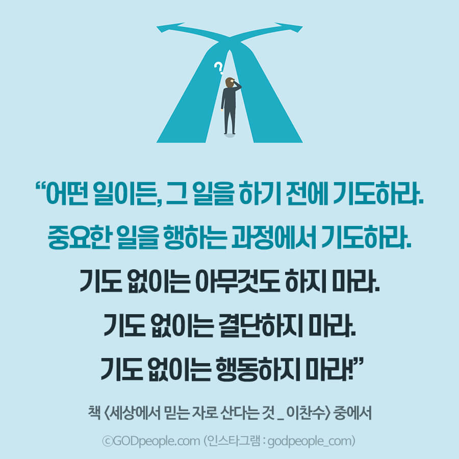 기도 없이는 결단하지 마라. 기도 없이는 행동하지 마라!” (행동 전 기도)