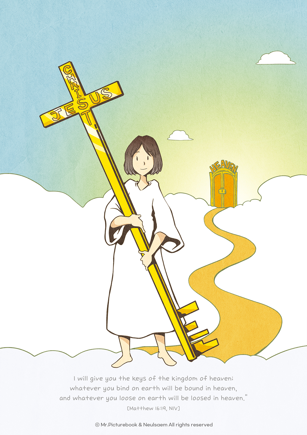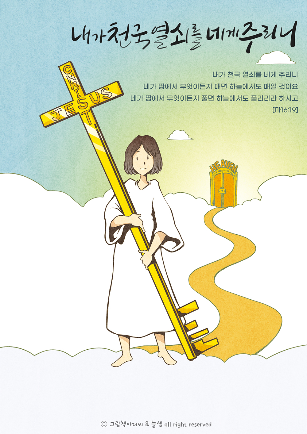 [마16:19] 내가 천국 열쇠를 네게 주리니 네가 땅에서 무엇이든지 매면 하늘에서도 매일 것이요 네가 땅에서 무엇이든지 풀면 하늘에서도 풀리리라 하시고