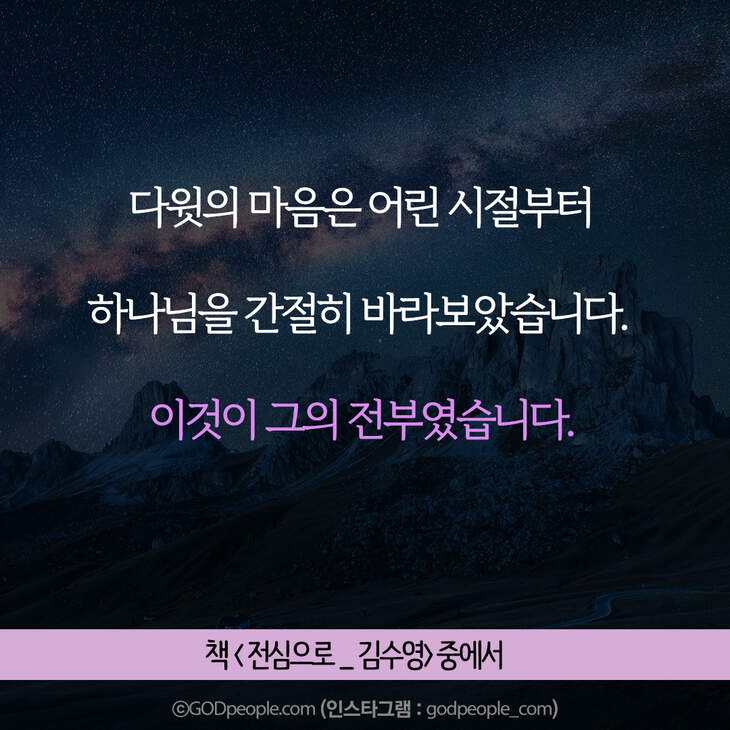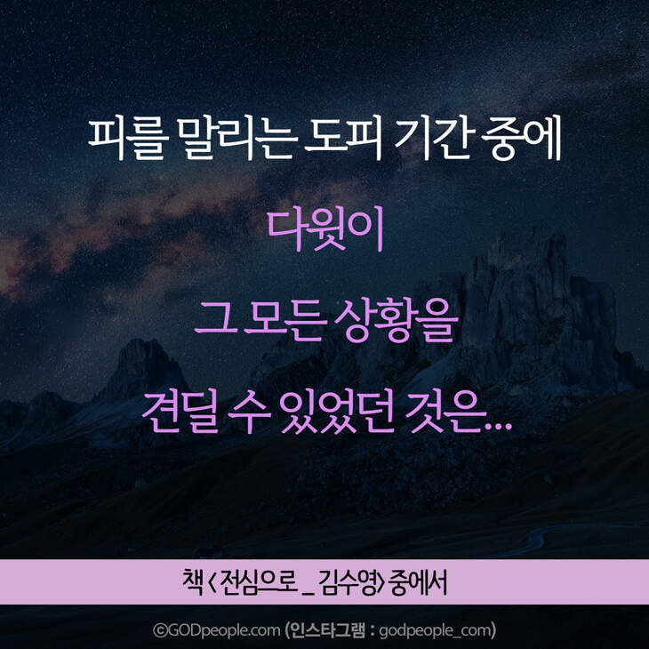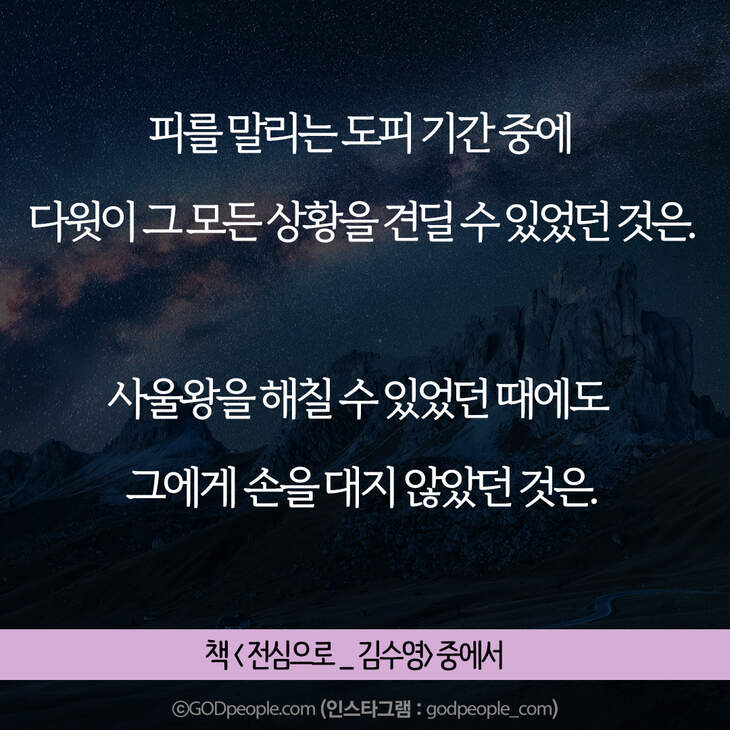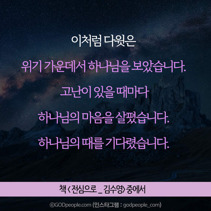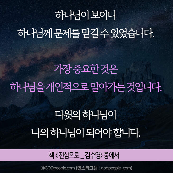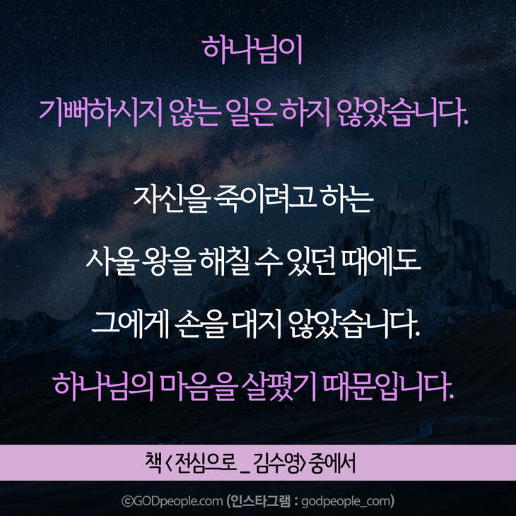 크리스천 생활을 풍성하게 하는 #크리스천굿즈 https://gp.godpeople.com/archives/109185 * 갓피플 인스타 : 인스타에서도 갓피플을 만날 수 있어요! (팔로잉~)▶ http://www.instagram.com/godpeople_com좋아요아멘개척교회 돕기 2020-11-25 · 9665 · 129 · 고난순종하나님구원광야다윗사울슬플때힘들때인스타갓피플 인스타더보기그렇게 준비하고 헌신했는데,,,그의 인생은 허무하게 끝난 것처럼 보였습니다. 그러나결혼에서 매우 중요한 부분! 기억하세요.내 생각이 너무 강해서, 주님의 사인도 못 알아들으면 어떡해요?