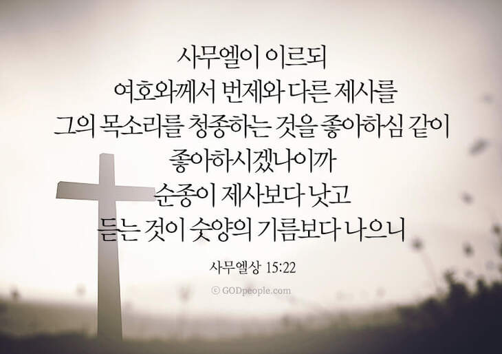 사무엘이 이르되 여호와께서 번제와 다른 제사를 그의 목소리를 청종하는 것을 좋아하심 같이 좋아하시겠나이까 순종이 제사보다 낫고 듣는 것이 숫양의 기름보다 나으니 _사무엘상 15:22
