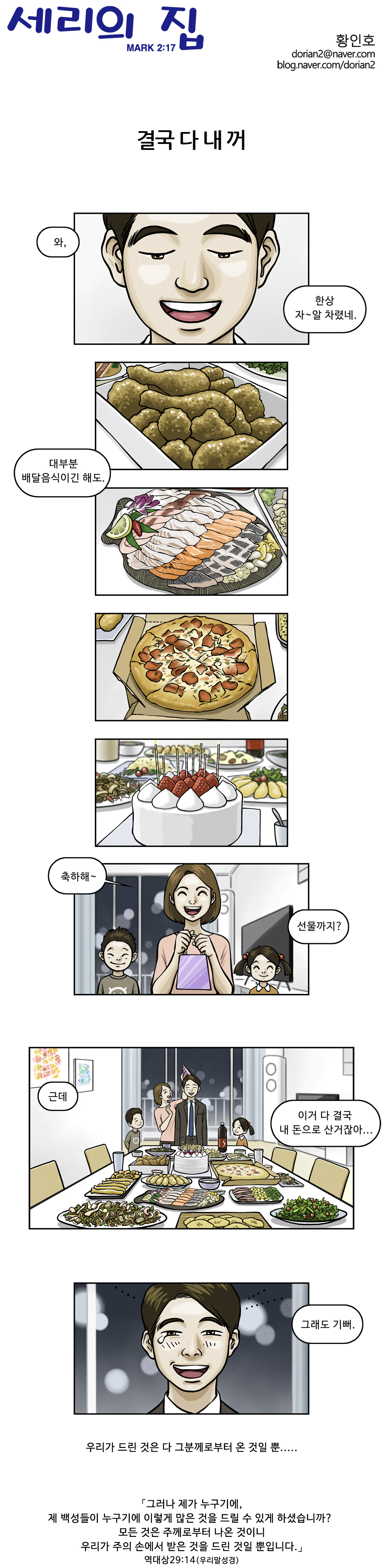 황인호 블로그 https://blog.naver.com/dorian2황인호 작가 작품활동 응원하기!지난 20년간 갓피플 만화는 주보 사용을 무료로 제공해왔습니다. 이제는 작가들에게 작은 정성을 표현하면 어떨까요? 주보 1회 사용시 1,000원의 자발적 결제 후 이용해주세요주보사용 자발적 결제1,000원작가에게 커피 한잔선물하기좋아요아멘개척교회 돕기 2024-05-28 · 1357 · 11 · 6헌신봉사일사역사명세리의 집_황인호더보기믿음의 힘영적 전쟁미션:임파서블