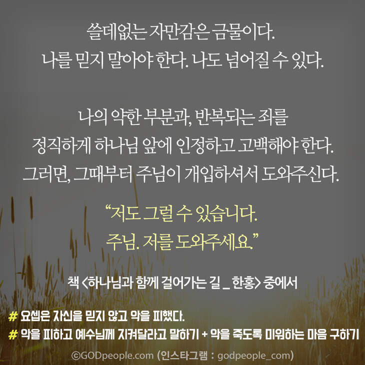 (자만하지 말것. 요셉은 난 유혹에 빠지지 않아. 하지않고 악을 피했다.)
