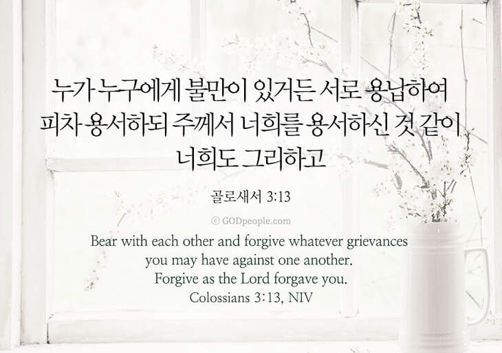 누가 누구에게 불만이 있거든 서로 용납하여 피차 용서하되 주께서 너희를 용서하신 것 같이 너희도 그리하고 _골로새서 3:13