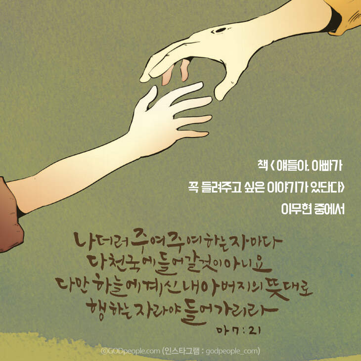 우리가 이 땅을 살면서 하나님의 뜻이 어디에 있는지 더듬어 살피고, 깨닫도록 도와주시지. 손만 들고 “네, 믿습니다!” 고백한다고 그냥 천국에 들어갈 수 있는 게 아니란다.
