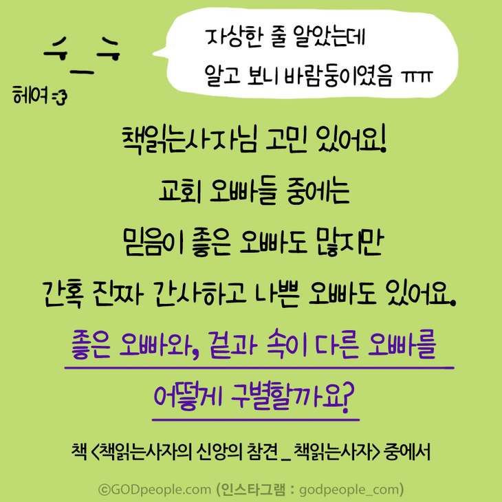 책읽는사자님! 어떤 오빠가 좋은 교회오빠인가요?